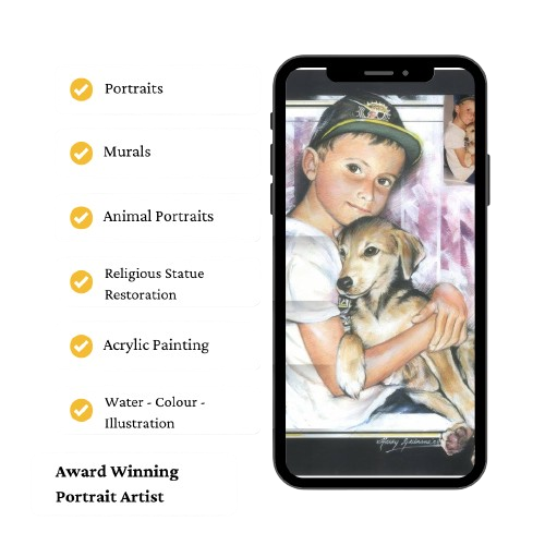 A unique gift idea, in acrylic, water colour, pen & ink or pencil. Portrait from photo no sitting needed, available in a variety of sizes.