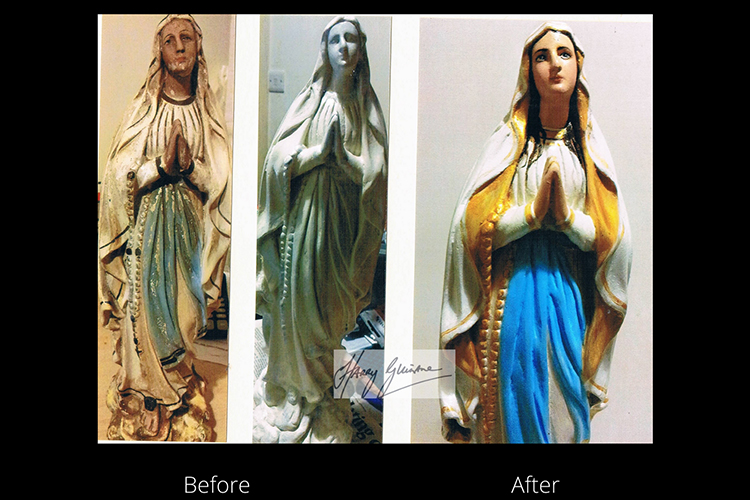 I specialize in the careful restoration of religious statues, icons, and devotional art. Whether aged by time, weathered by the elements, or damaged by accident, your treasured piece will be treated with reverence and restored with precision.